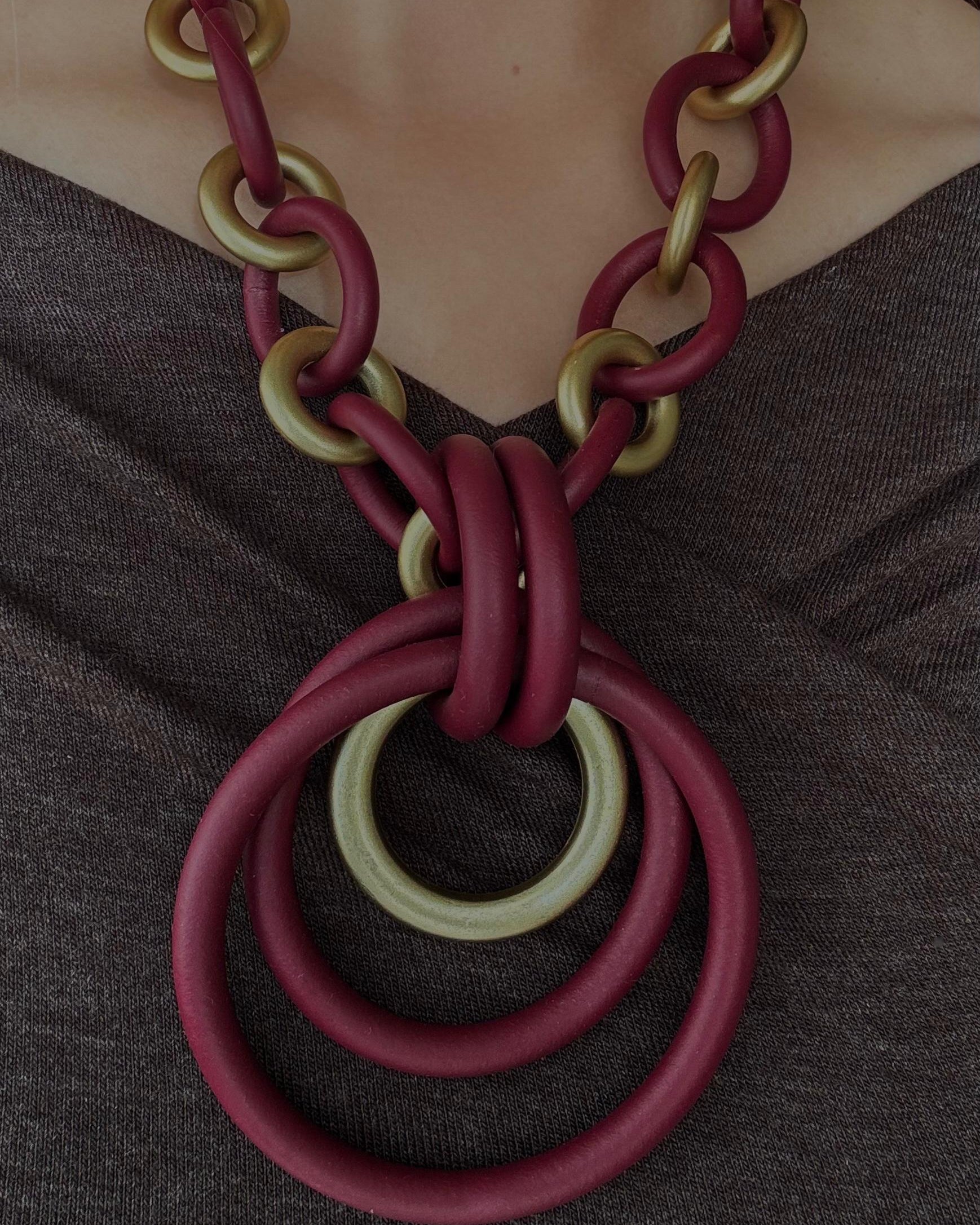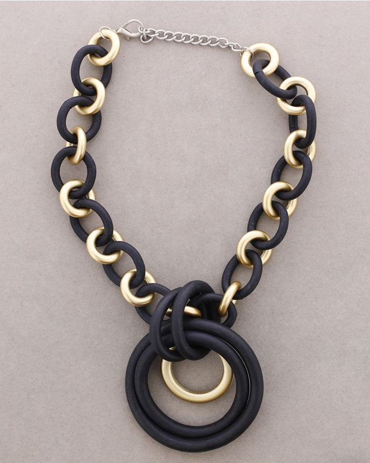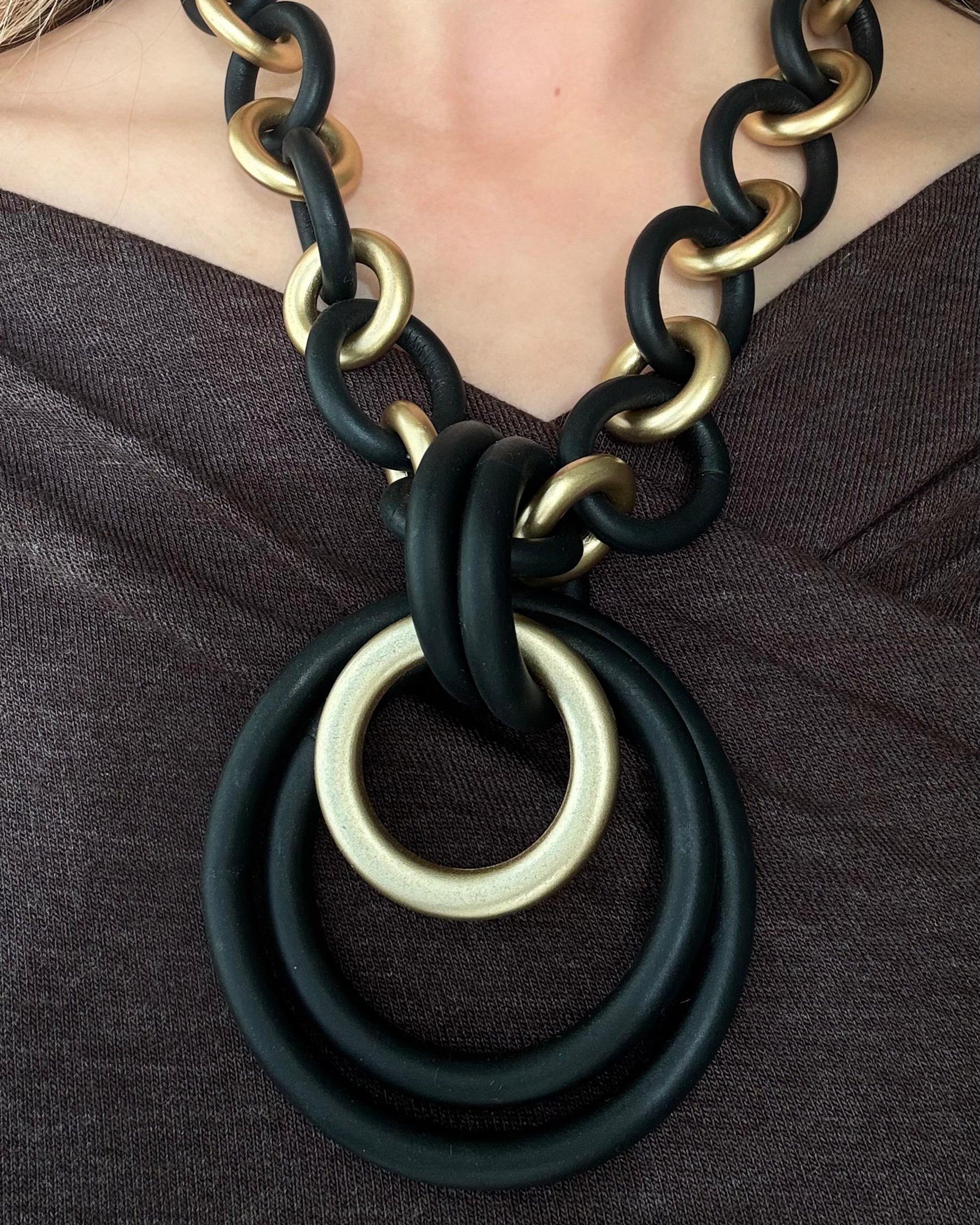 El collar Aroa es una pieza que destaca por su juego de volúmenes y contrastes. Disponible en dos colores, combina con eslabones en dorado, creando una composición sofisticada.