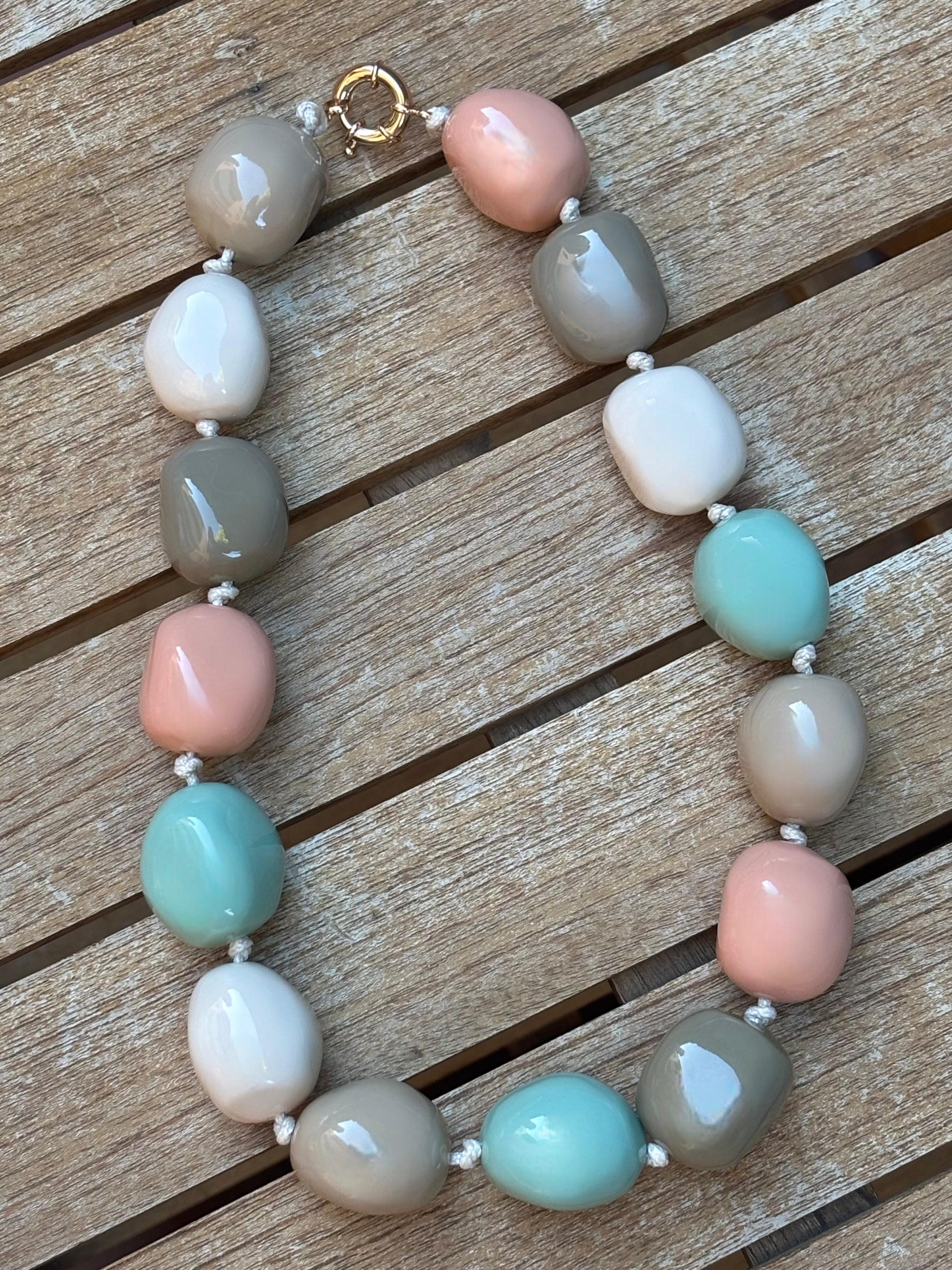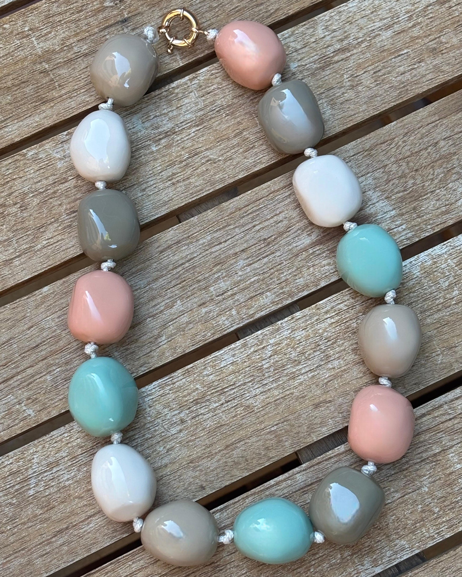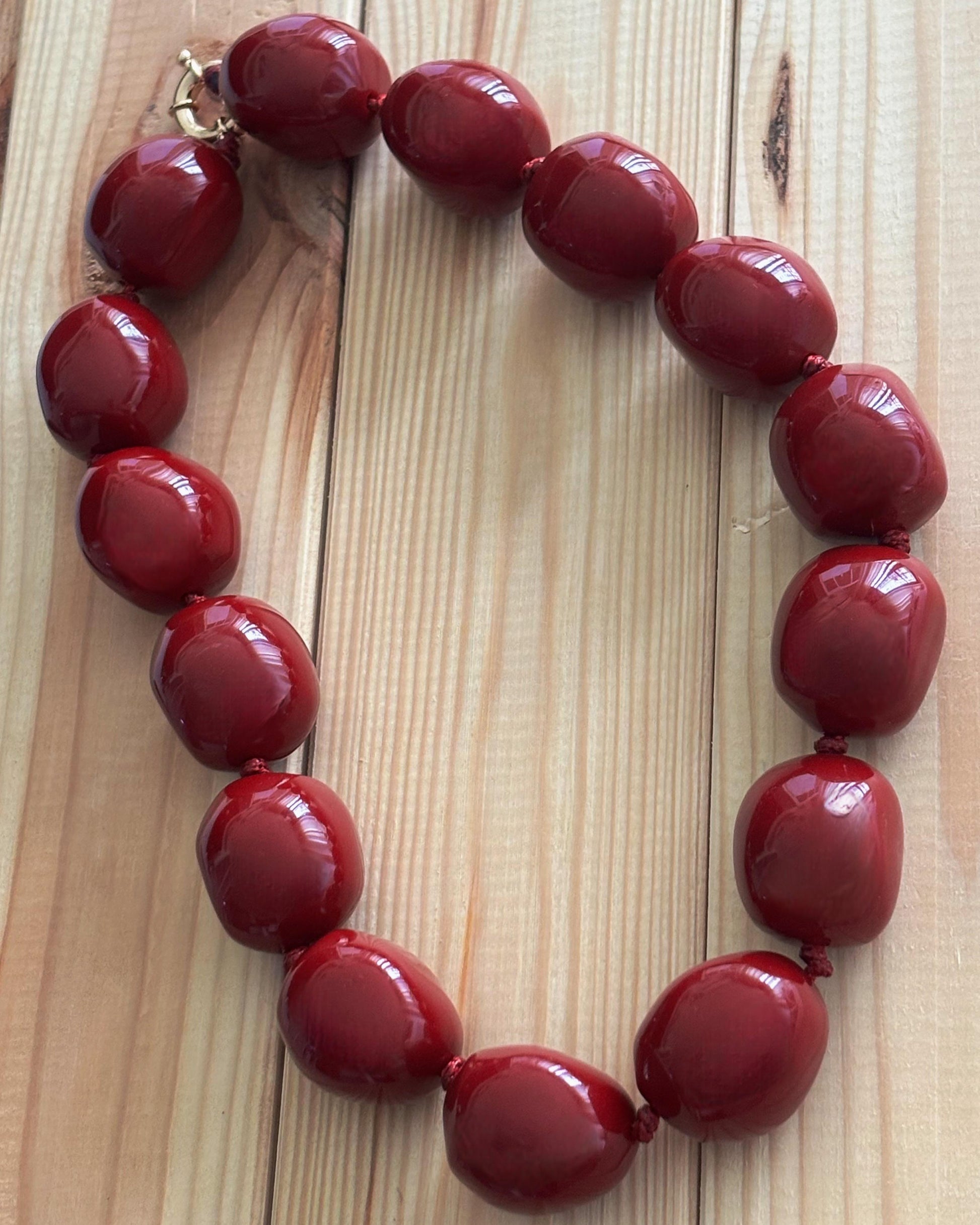 Nuestros collares de bolas XL destacan por sus cuentas redondeadas de acabado brillante, ensartadas con nudos entre cada pieza para aportar resistencia y un toque más elegante.
