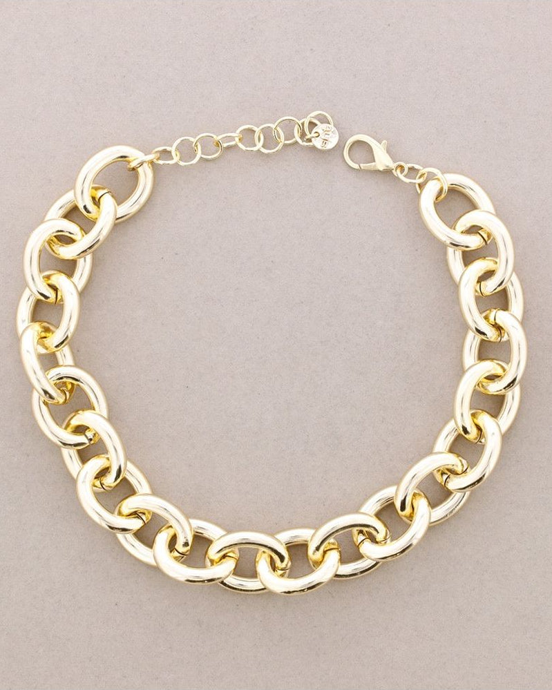 Presenta un diseño clásico de eslabones formando una cadena de estilo Chunky. Ideal para llevar justo a la altura de la clavícula.