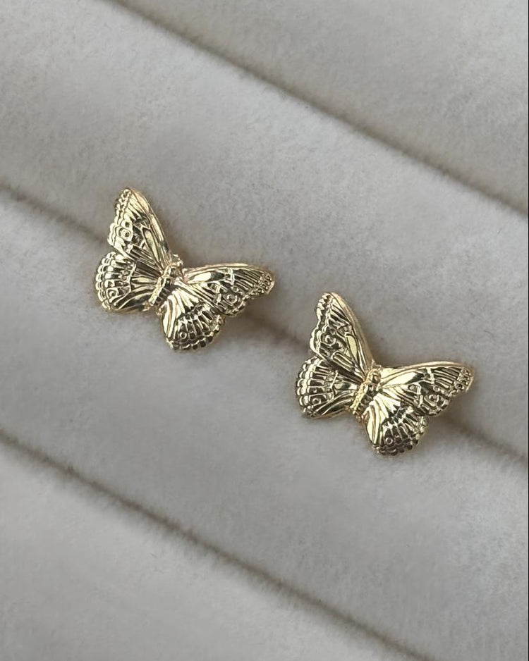 Nuestros Pendientes Butterfly están elaborados en Plata de Ley 925, con un baño de oro de 18k, destacan por el detallado relieve de sus alas, que capturan la luz desde cualquier ángulo, aportando una luminosidad especial.