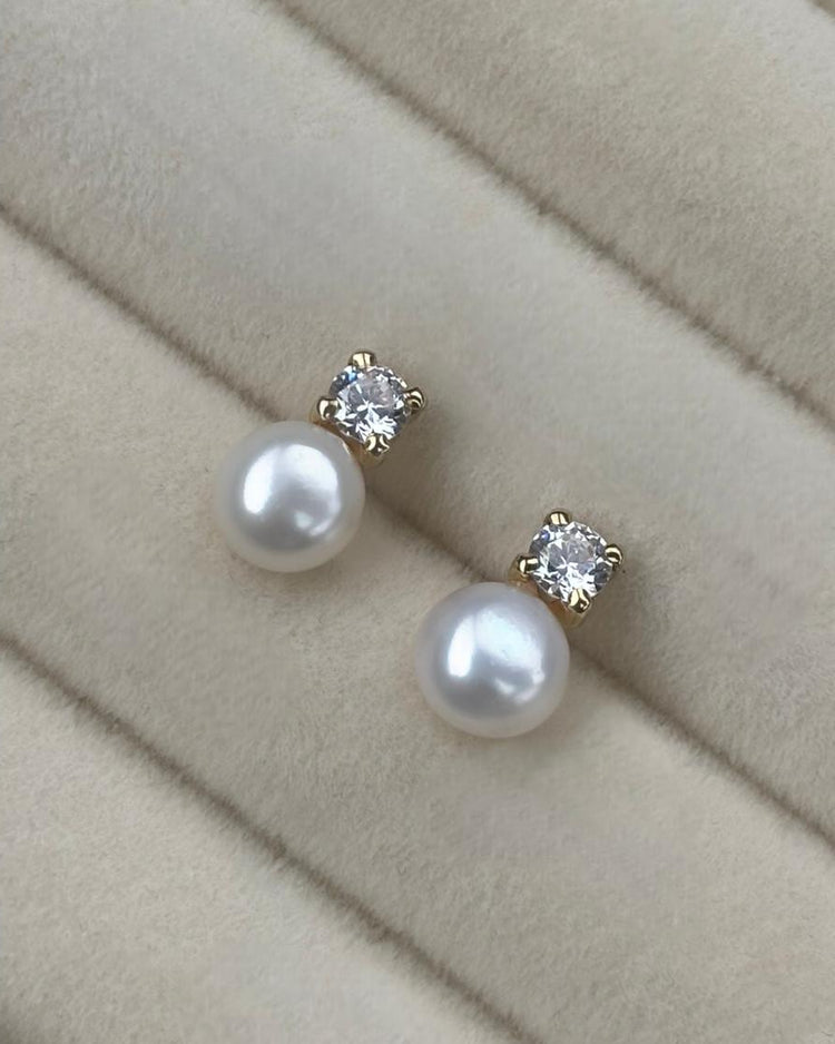 Elaborados en Plata de Ley 925 con un baño de oro de 18 Kt, los pendientes Sofía, presentan una perla cultivada con una circonita en color blanco aportando luminosidad.